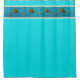 rideau de douche turquoise clair avec bande décorative de motifs floraux de raisins côtiers sur fond bleu mer fluide. Ce design rappelle la brise marine salée dans laquelle ses feuilles dominent.
