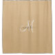 monogramme blanc personnalisé sur rideau de douche caramel de paille avec une police de script sur la conception sur un arrière - plan imprimé faux lin gris effet photo. Couleurs neutres pour correspondre et contraster avec des couleurs plus audacieuses, ou d'autres neutres.