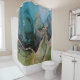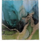 Art dramatique et unique pour la salle de bain. Abstrait intrigant dans des nuances de sarcelle, d'aqua, de vert et de noir avec un accent d'or liquide. Tourbillons d'encre à l'alcool dans des tons naturels organiques magnifiques. Art abstrait original de l'artiste international Pauline Benjes. Rideau de douche noir vert sarcelle dramatique.