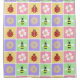 Les carrés pastel roses, jaunes, violets et verts sont ornés de coccinelles, de fleurs de bois de chien, de marguerites et d'abeilles, puis bordés de coutures blanches serrées pour créer un motif de printemps amusant et doux.