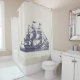 rideau de douche à thème nautique en ivoire, avec des graphismes vintages, en bleu, d'un voilier battant pavillon américain. Customisez d'ajouter votre propre texte ou laissez comme pour un joli ajout à votre salle de bain. Des produits de toilette à thème nautique correspondants sont disponibles.