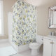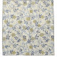 Vignes et feuille bleus de William Morris de JASMIN BLEU' avec les fleurs ocres sur un arrière - plan blanc cassé.