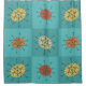 Un motif à damiers de turquoise et turquoise vert avec des planètes en cercle sur le thème de l'âge de l'espace en jaune et orange et Spoutnik starbursts.
