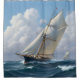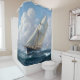 Un yacht change de cap dans une course de voilier dans cette image passionnante et dynamique sur un rideau de douche. Parfait pour tous ceux qui aiment la voile et l'océan.