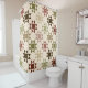 Donnez à votre salle de bain un air de maison. Ce rideau de douche est conçu pour ressembler à une courtepointe Amish avec un bloc de courtepointe Ohio Star imprimé dans les tons marron, tan, vert sauge, marron et mauve contre un arrière - plan crème.