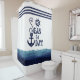 L'Ancre Nautique MARIE LE JOUR AQUATIQUE Marine rideau de douche blanche. rideau de douche à thème nautique avec un design inspirant et motivant SEAS THE DAY typographie avec ancre, roue du navire, ondes d'aquarelle et rayures en bleu marine et blanc. ASSISTANCE : Pour obtenir de l'aide sur la modification de la conception ou si vous souhaitez coordonner des éléments, contactez le concepteur AVANT DE COMMANDER via l'onglet MESSAGE Conversation Zazzle ci-dessous ou envoyez un courriel à makeitaboutyoustore@gmail.com.