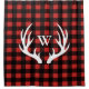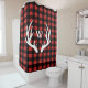 Le plaid de contrôle de buffle rouge et noir a modelé le rideau en douche avec une silhouette d'andouillers de cerfs communs de blanc. Grand pour une salle de bains de salle de bains de cabine ou de caverne d'homme !
