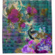 Rideaux De Douche Antique Illustrated Peacock & Flowers Grunge