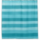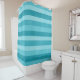 Un rideau de douche design et moderne avec une motif rayée dans les tons bleu marine, turquoise, turquoise et menthe.