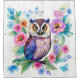 Belle Chouette et Fleur Floral Art Aquarelle Peinture Design