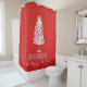 Cet arbre de Noël en aluminium rideau de douche rouge a un arbre de Noël en aluminium rétro au centre avec des ornements rouges et verts et une étoile rouge sur le dessus, le tout sur une étoile d'éclat et un arrière - plan atomique rouge. Personnalisez le rideau de douche avec votre propre message de vacances pour égayer votre décor maison pour la saison de Noël.