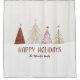 La conception élégante du rideau de douche de salle de bain festive présente un affichage classe d'arbres de Noël enneigés en rouge, or et rose sur un fond beige crème neutre légèrement rayé. La section inférieure est recouverte de neige blanche avec "Joyeuses Fêtes" dans une typographie classique élégante. Ajoutez un nom personnalisé ou une ligne de texte personnalisé dans un script rouge assorti avec le modèle simple à utiliser.
