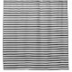 Ce rideau de douche présente des rayures noires, argentées et blanches en métal gras dans un motif abstrait.