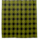 Ce rideau de douche a un design moderne du milieu du siècle de diamants noirs solides à l'intérieur des contours de diamants noirs sur un champ de vert.