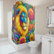 Ce rideau de douche a un design lion dessus.
