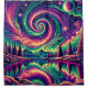 Cette oeuvre d'art vibrante capture la beauté fascinante des aurores boréales, ou aurores boréales, sur un paysage montagneux. Le ciel est rempli de motifs tourbillonnants de violet, vert et bleu, créant un étonnant affichage de couleurs. Les étoiles et les planètes s’ajoutent à la scène cosmique, tandis que les couleurs de l’aurore sont reflétées dans le lac réfléchissant en contrebas, ce qui augmente l’effet symétrique. La combinaison du phénomène naturel et du paysage serein fait de cette pièce un ajout captivant à tout espace.