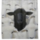 Cette œuvre d'art stimulante délivre une métaphore visuelle puissante sur l'individualité, l'identité et le courage. Un seul mouton noir se tient au centre d'une mer de visages blancs, rencontrant le regard du spectateur avec une confiance tranquille. Le contraste est saisissant tout en étant élégant, attirant immédiatement l'attention sur l'idée d'être différent tout en étant entouré de la similitude.