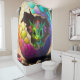 Ce rideau de douche a un mignon petit dragon qui coule de son oeuf représenté dessus.