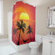 Transform your bathroom into a tranquil escape with this stunning shower curtain design, featuring a vivid tropical sunset scene. A glowing sun dips into the calm ocean, casting warm hues of red, orange, and gold across the sky and water. Silhouetted palm trees frame the composition, with a relaxed figure lounging in a hammock between two trunks, evoking a sense of serenity and island bliss. The rich colors and peaceful imagery create a soothing, vacation-like atmosphere—perfect for adding warmth and elegance to your daily routine.