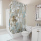 Rideaux De Douche Beige Brown Bleu Floral Turquoise