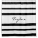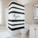 Ce rideau en douche simplement élégant est blanc avec six rayures et pièces noires pour votre nom gribouillé dans le cursive noir. C'est un rideau en douche chic et moderne qui ajoutera un contact de l'élégance classieuse et personnalisée à votre décor de salle de bains.