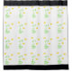 rideau de douche design avec motif marguerite blanche avec accents jaune et vert, rayures noires.