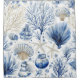 Rideaux De Douche Blue Coastal Toile Seashell Coral Pattern (2)
