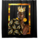 Avec une représentation audacieuse et magnifique d'une femme noire parée de bijoux en or exquis et d'une couronne royale, ce rideau de douche se démarque sur un fond noir riche. La bordure est un mélange époustouflant de teintes or, cuivre et bronze, entrelacées de motifs géométriques complexes qui ajoutent de la profondeur et de la sophistication.