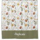 Rideaux De Douche Boho Green Watercolor Wildflower Monogram Name