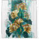 Branche avec bijoux, or et feuilles verts de Ginko biloba sur arrière - plan vert clair, peint. Ginko biloba