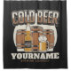 Personalized Cold Beer Bottle Brewery Brewing Company Bar design, featuring big beer bottle, sudsy mug and wooden brewing barrels. Customize with your Name or Custom Text !