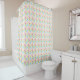 Rideau de douche design motif en fer à cheval dans des couleurs vives et amusantes, dont rose, bleu, vert, jaune et pêche avec blanc.