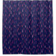 Ce rideau de douche est un motif moderne de coups de pinceau aléatoires en corail, rose, violet et fuchsia sur bleu marine.