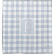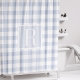Rideau de douche rustique moderne conçu sur mesure avec monogramme personnalisé sur un motif de vérification de buffle bleu poussiéreux clair.