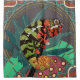 Panthère caméléon illustrée avec fond de forêt tropicale de Madagascar. Dessiné à l'origine à l'encre.