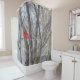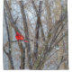 Un cardinal mâle et un chickadee noir encerclés s'assoient dans mon redbud pendant une tempête de neige.