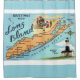 Carte vintage et colorée de Long Island New York. C'est une vieille carte postale réutilisée sur un rideau de douche amusant.