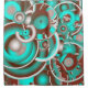 Cercles célestes circulaires, dessin futuriste de TheFabricSeal à Zazzle. Manipulation de la conception graphique numérique avec de nombreux motifs géométriques superposés avec Kandinsky style concentrique de couleur circles tout au long. Père Noël Fe Le désert du sud-ouest et l'art indien ont inspiré des couleurs bleu et vert turquoise, cuivre, rouille, rouge, brun, tan et gris. Influencé également par l'art de l'Orient, méditerranéen, indien et Tondo Tondos style Renaissance avec un dessin mécanique moderne.