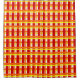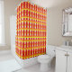 Ce rideau de douche est de style Art déco, avec des lignes épaisses et fines en rouge, orange et jaune.