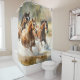 rideau de douche avec une belle aquarelle peinture de 3 chevaux sauvages courant à travers un cours d'eau.