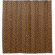 Ce rideau de douche a un design chevron des années 70 en orange rétro et or sur un terrain marron.