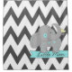 Rideaux en douche gris-clair et blancs élégants et à la mode de motif de zigzag de Chevron avec l'éléphant mignon de pois de bleus layette. Motifs chics. Ajoutez votre nom.