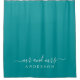 Chic rideau de douche en monogramme vert tropical avec le texte Mr et Mme en blanc élégant scrip. Le vert viridien couleur est utilisé pour ce design élégant que vous pouvez customiser avec votre nom marié. Un cadeau de luxe parfait pour le couple marié. Conçu exclusivement pour vous par Happy Dolphin Studio.