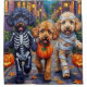 Les canicules adorables habillées de costumes d'Halloween ludiques portent des seaux citrouilles tout en faisant des tours ou en traitant sous le ciel illuminé par la lune. Ce design festif met en valeur le manteau bouclé de la race, les yeux intelligents et la personnalité élégante, capturant parfaitement l'atmosphère éffrayante et amusante de la nuit d'Halloween. Une célébration élégante et joyeuse pour les amoureux de les chiens comme pour les fans d'Halloween.