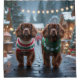 Ce design festif capture l'esprit joyeux de la saison des fêtes, mettant en vedette des chiens adorables. Niché dans un pays des merveilles hivernal, avec un arbre de Noël décoré et des cadeaux magnifiquement emballés. Les flocons de neige tombent doucement, ajoutant une touche magique à la scène, tandis que les couleurs vives des décorations de Noël créent une atmosphère chaleureuse et joyeuse.