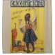 Cette image frappante est une image antique de la fin des années 1800 montrant une fille qui pratique son écriture de chocolat sur le mur. Voici une image Vintage d'affiche publicitaire datant de 1892. Menier est une société française de chocolat.
