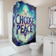 Ce rideau de douche dit "Choisis la paix" dessus.