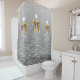 Rideaux De Douche Christmas Sparkling Trees Silver Faux Gold Bow