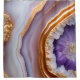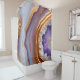 La paire de rideaux présente un design saisissant qui ressemble à une coupe en pierre de géode ou d'agate, avec des couches de lavande, de bleu clair, de blanc et d'or sur les bords extérieurs, passant à des teintes violettes et marron plus profondes vers le centre. Le point central est une structure cristalline violette et blanche vibrante, entourée d'une bordure dorée. L'effet global est visuellement captivant, donnant l'impression d'une formation minérale naturelle.