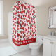 Ce mignon motif de cœur d'amour abstrait rouge est présenté sur ce rideau de douche de la Saint-Valentin blanc. Les noms de vous deux sont ajoutés dans une police grasse amusante. Pour modifier le texte, cliquez sur le bouton Personnaliser. Cette conception contient A.I.